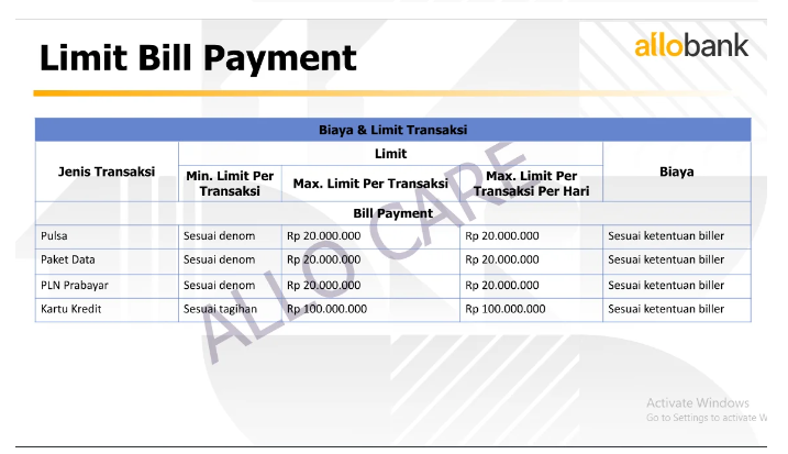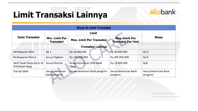 Limit Transaksi Allo Bank
