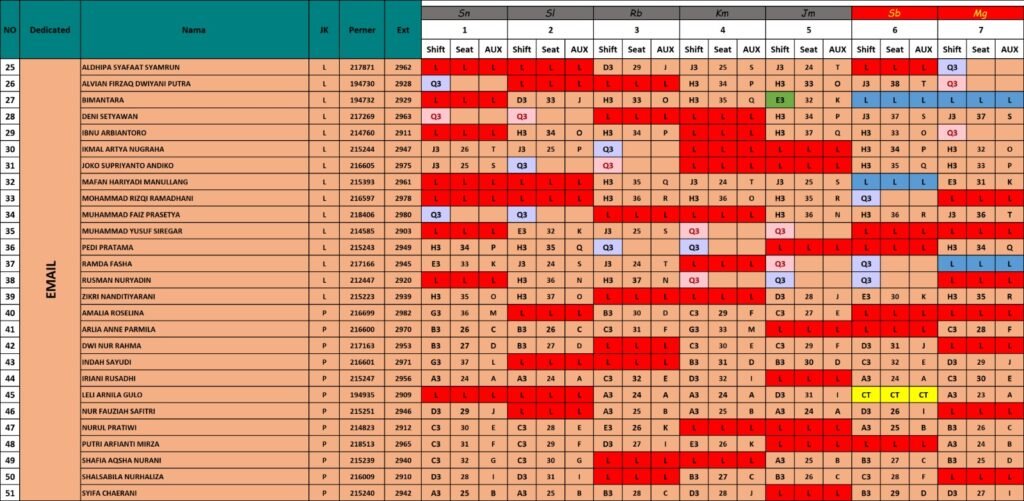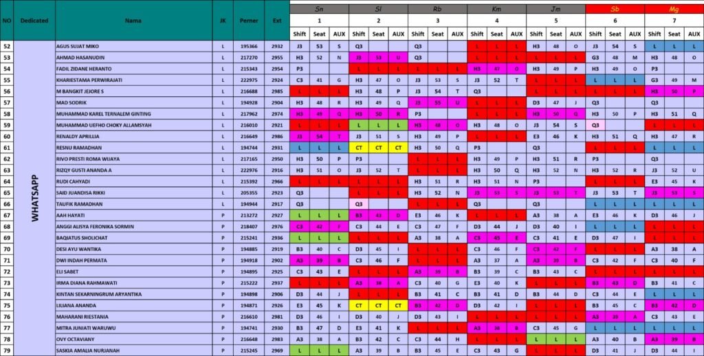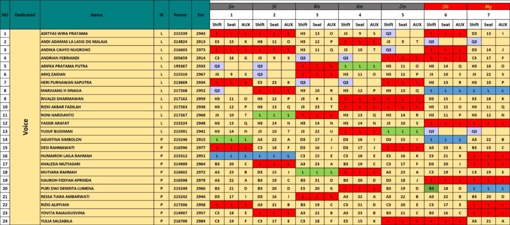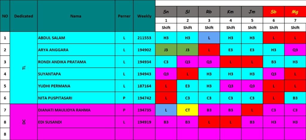 Berikut Jadwal roster tanggal 1 s/d 7. Mohon untuk dicek kembali dengan seksama.
